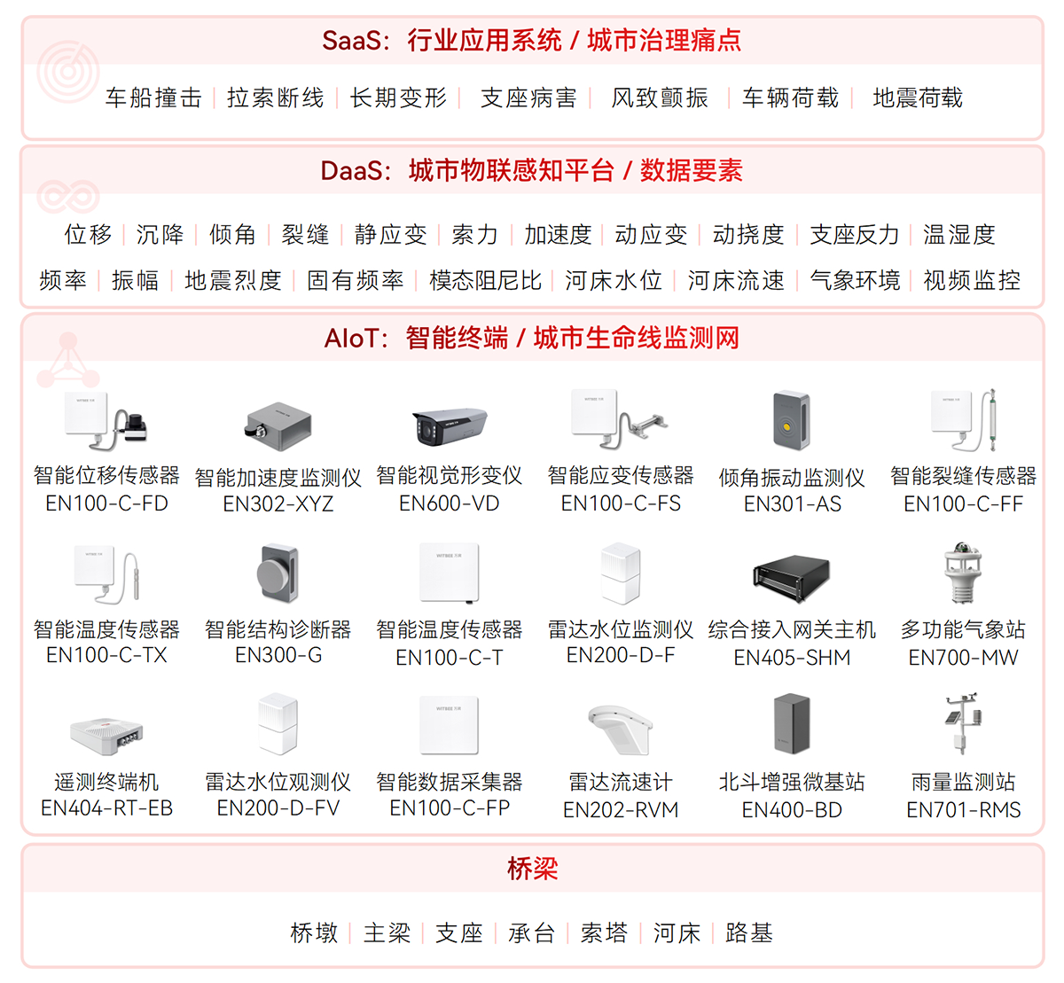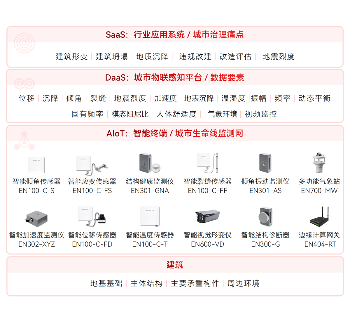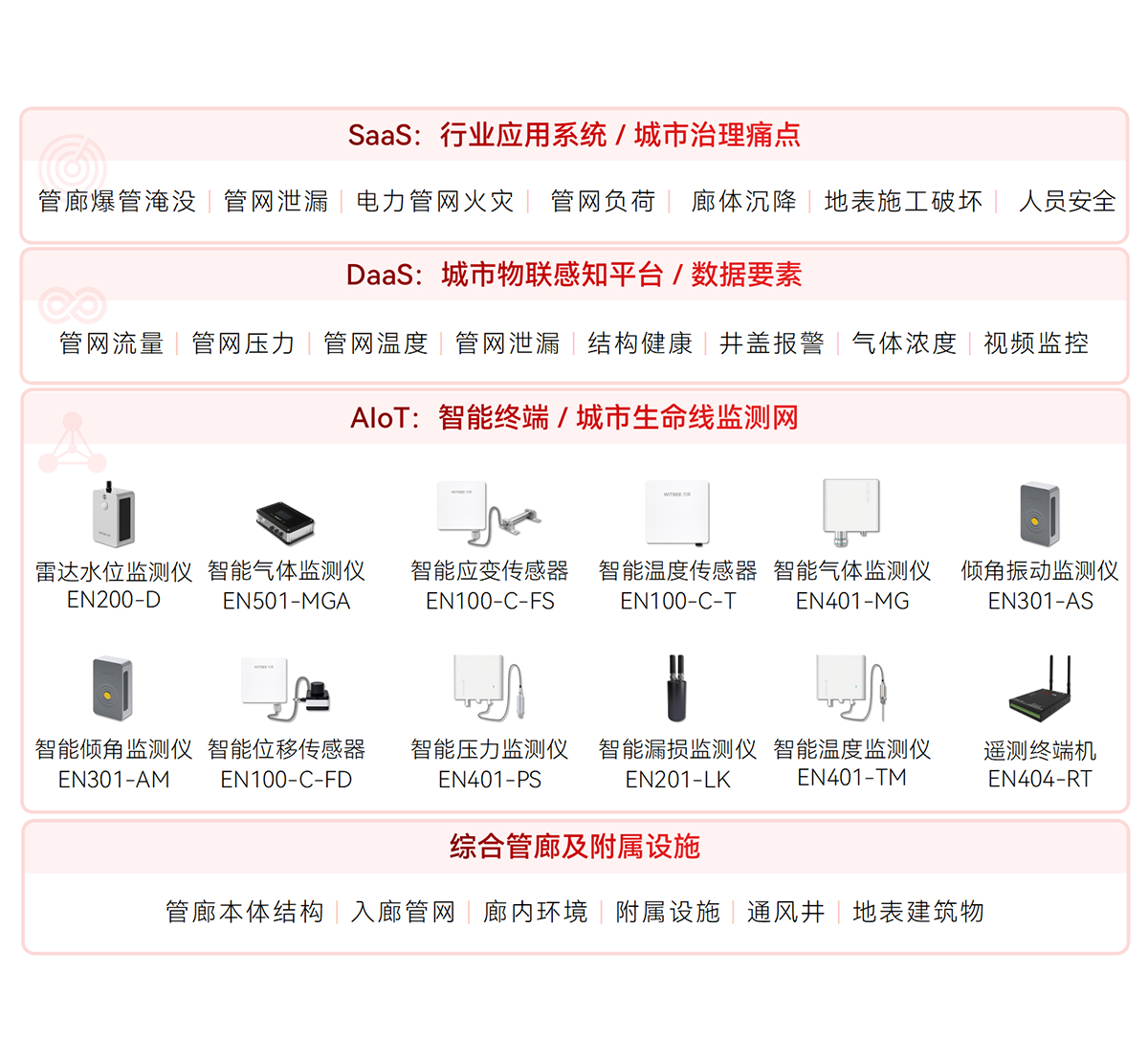 WITBEE?萬賓?是中國首批城市生命線智能監(jiān)測儀器和大數(shù)據(jù)服務提供商,提供智能監(jiān)測儀器、智能基站、云端平臺等智能物聯(lián)網(wǎng)技術(shù)與產(chǎn)品線,賦能城市排水、供水、燃氣、供熱、橋梁、建筑、隧道、綜合管廊、河湖等城市基礎(chǔ)設(shè)施生命線監(jiān)測感知網(wǎng)絡化建設(shè)和智能化管理,對接城市運行管理服務平臺,支撐城市運行“一網(wǎng)統(tǒng)管”,提升城市生命線運行效率和安全,提高城市精細化治理能力。